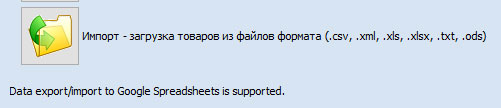 4. Выберите импорт товаров. Доступно открытие файлов с ПК или загрузка с Google электронных таблиц напрямую.