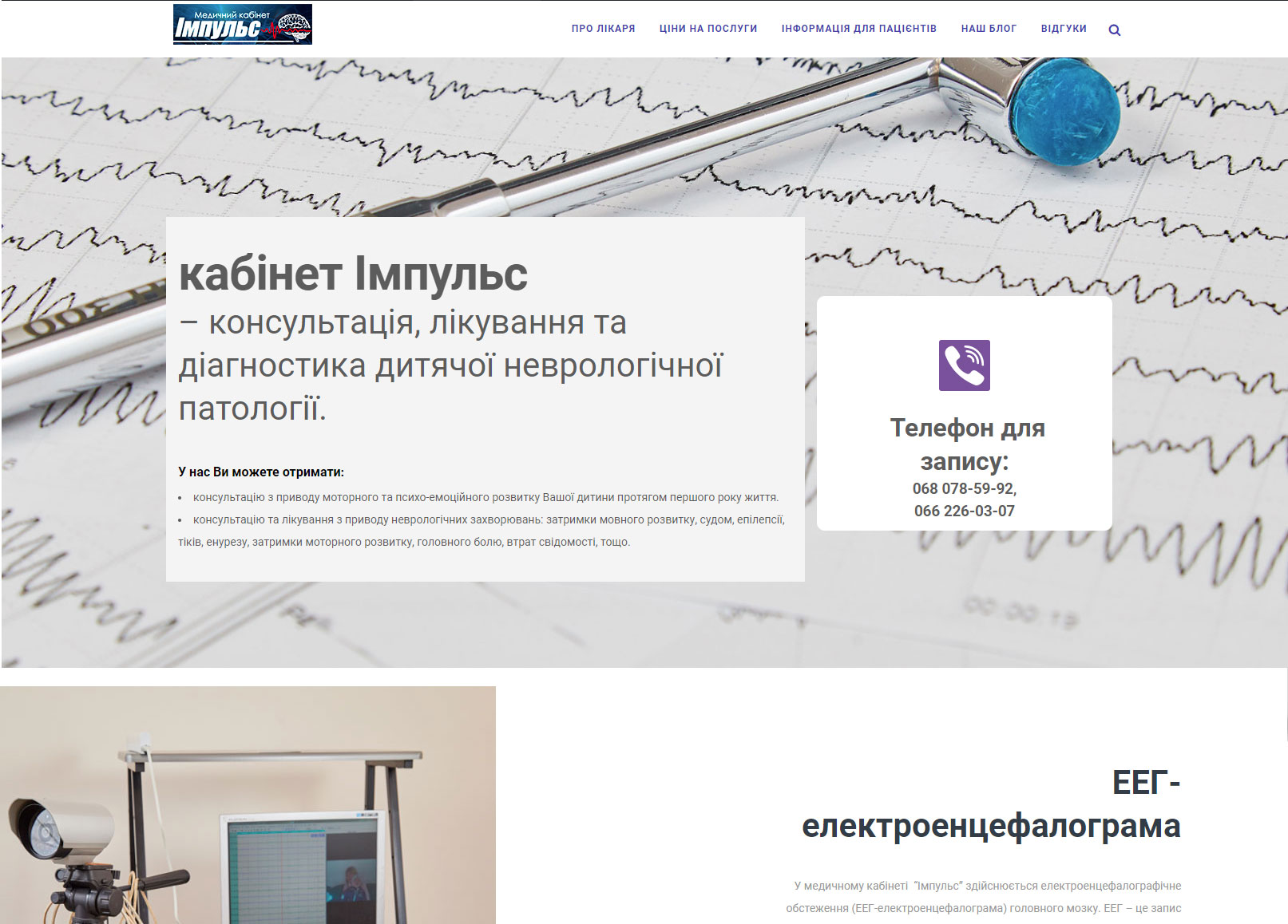Сайт с минимальной структурой, который дает больше информации про специалисте: часы приема, стоимость консультаций, где мы находимся, основные правила работы и приема посетителей.